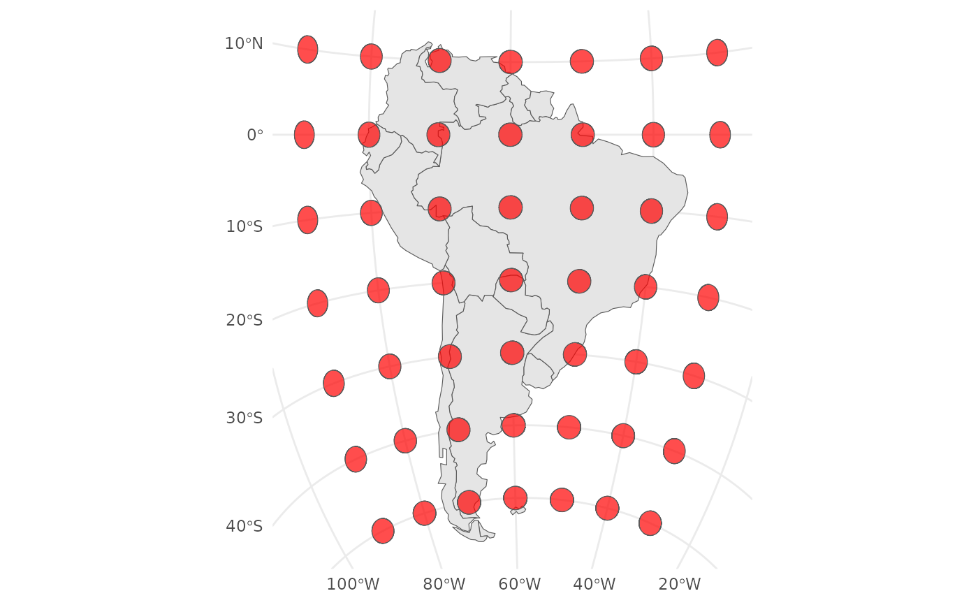 geom_tissot.RdThis function adds Tissot's indicatrix to a map. Tissot's indicatrix is a mathematical contrivance used in cartography to characterize local distortions due to map projection.